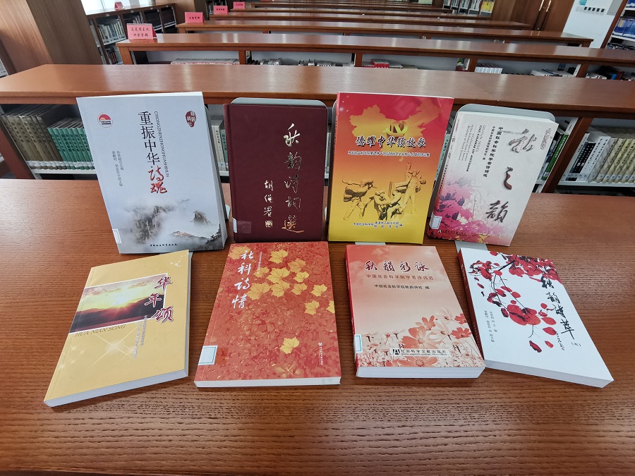 秋韵诗社是以我院热爱中国古代诗词文化、爱好诗词创作的离退休老同志为主组成的社团,诗社成立至今始终致力于学习、传承中国优秀传统,弘扬中华民族先进文化。本次捐赠图书中,不仅汇集了由离退休老同志所创作的《秋韵诗萃》《秋韵新咏》《秋韵》诗刊等诗歌专集,还有《重振中华诗魂》等诗词研究类图书,进一步丰富了文库馆藏。