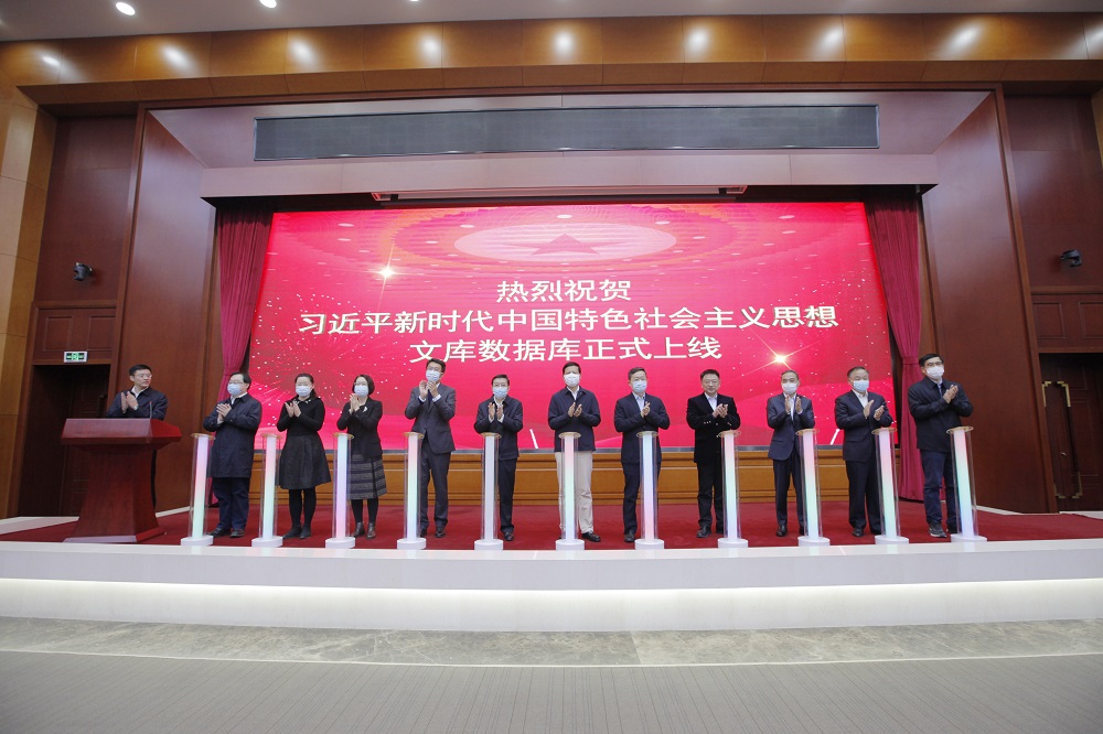 2021年11月3日,中国社会科学院习近平新时代中国特色社会主义思想文库数据库上线仪式在京举行。中国社会科学院院长、党组书记、习近平新时代中国特色社会主义思想研究中心主任谢伏瞻,副院长、党组副书记高翔等院党组领导,党史学习教育中央第二十五指导组组长段余应,中宣部宣传舆情研究中心主任、“学习强国”学习平台总编辑刘汉俊,以及国家图书馆,中央党校(国家行政学院)图书和文化馆,中央党校(国家行政学院)、外交部、国家发展改革委、教育部、生态环境部、中国法学会、国防大学、北京市等在京单位习近平新时代中国特色社会主义思想研究中心,人民日报、求是杂志、光明日报等单位嘉宾代表出席仪式。仪式由中国社会科学院主办,中国社会科学院图书馆和习近平新时代中国特色社会主义思想研究中心承办。中国社会科学院副院长、党组成员姜辉主持仪式。