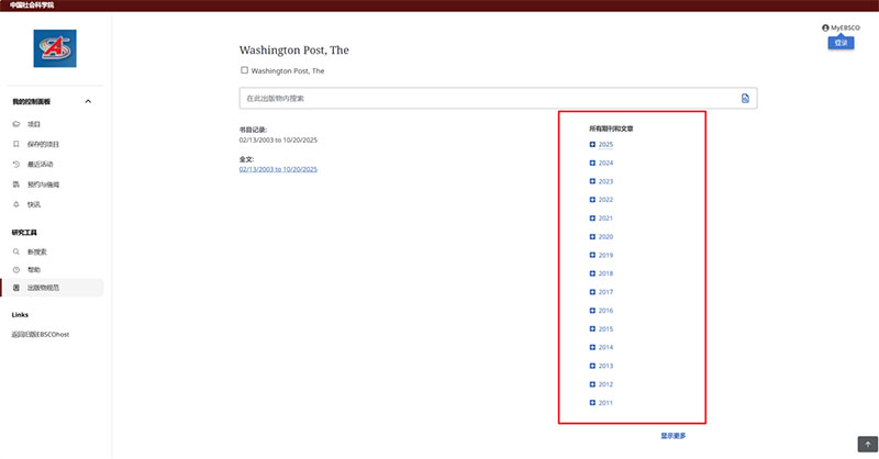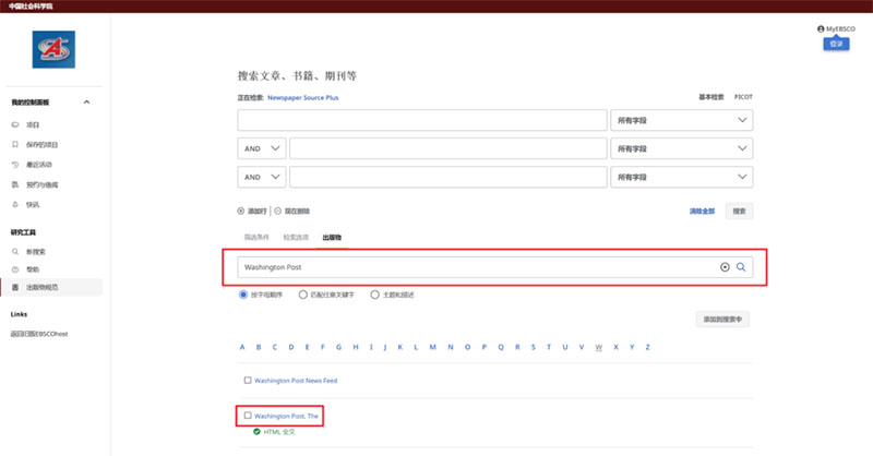 EBSCO-Newspaper Source报纸数据库由EBSCO公司出版,收录1990年至今520多种各类报刊传媒,包括389种美国各州报纸、40多种国际大报的完整全文。报纸内容以英文为主,涉及政治学、经济学、社会学、新闻传播学等多个学科领域,能满足不同学科研究者和读者的需求。