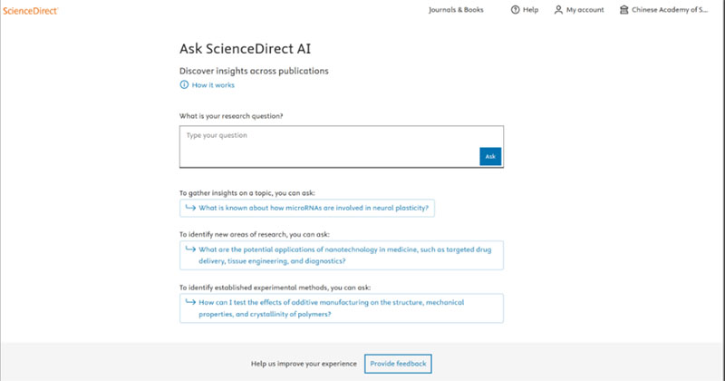 ScienceDirect AI是爱思唯尔于2025年3月发布的一款面向科研人员的生成式人工智能工具,基于成熟的大模型,利用ScienceDirect平台上逾千万篇同行评审期刊论文和图书章节全文,即时检索、总结科研洞察,并提供阅读助手和实验对比等实用工具。