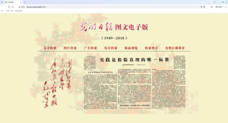 《光明日报》1949年6月16日创刊于北平,是中共中央主管主办、中央宣传部代管的中央党报,是中共中央机关报之一。本库包含了《光明日报》创刊至2018年的全部报纸版面、文章、图片和广告等数据内容,提供原版PDF和文本版两种格式,可通过正文、作者、标题、栏目、版名、来源、广告主等检索,可以实现对报纸的浏览、检索、复制和打印等功能。